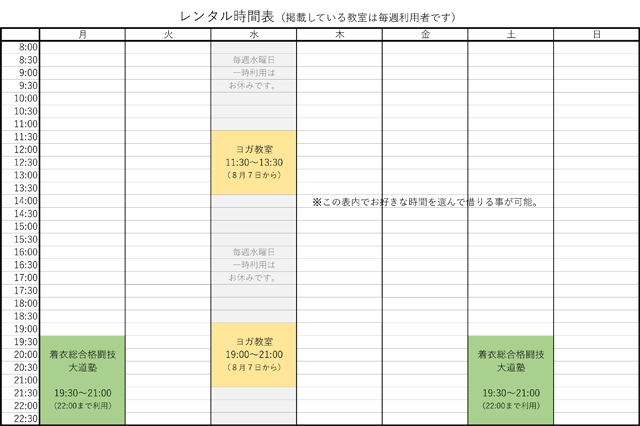 日中のヨガ・子供教室・お年寄りの体操など素敵!